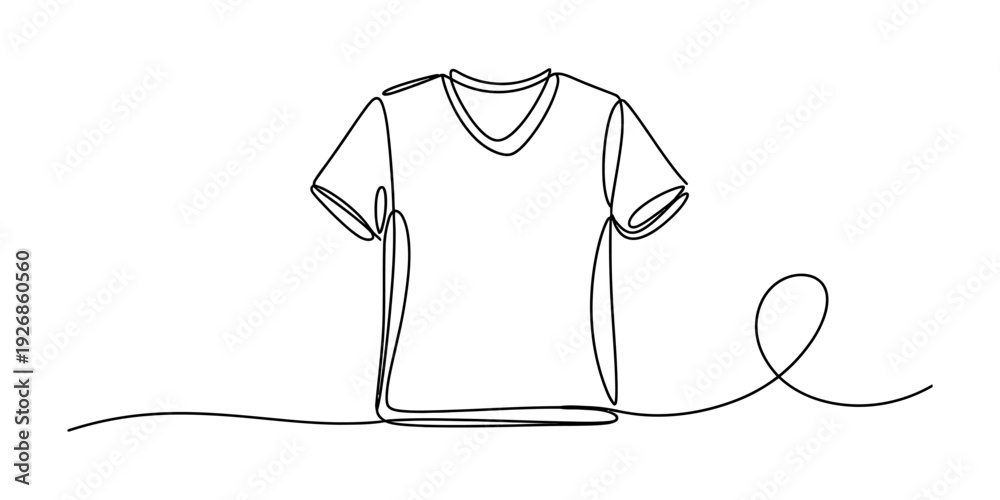 A minimalist continuous line drawing of a v-neck t-shirt against a clean white background Vector, illustration #1926860560