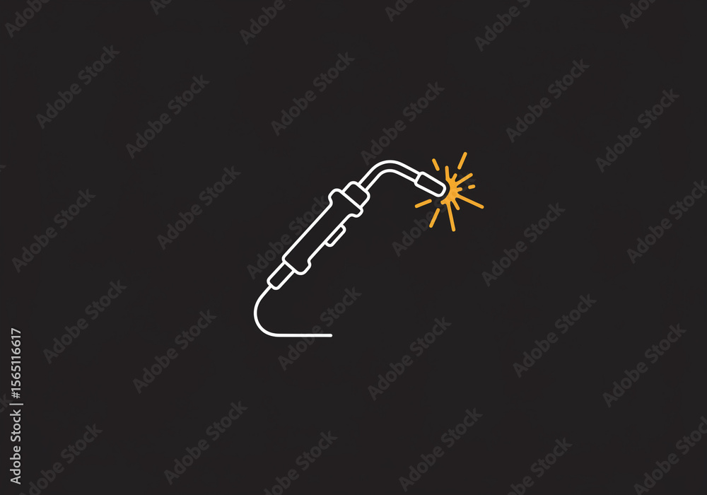 A minimalistic outline of a welding torch with sparks on a dark gray background illustration vector #1565116617