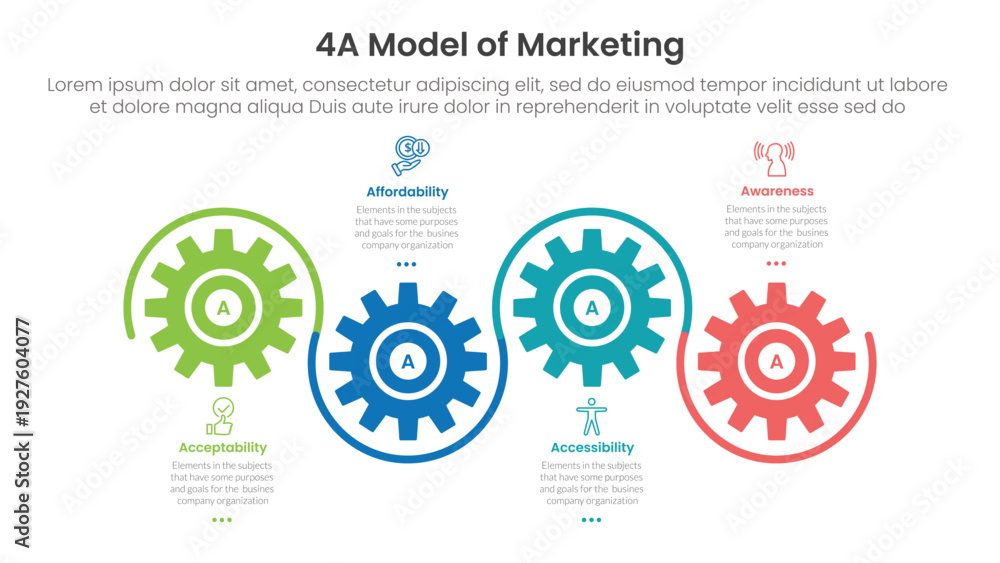 4A model of marketing infographic 4 point stage template with gear shape on horizontal line up and down for slide presentation #1927604077