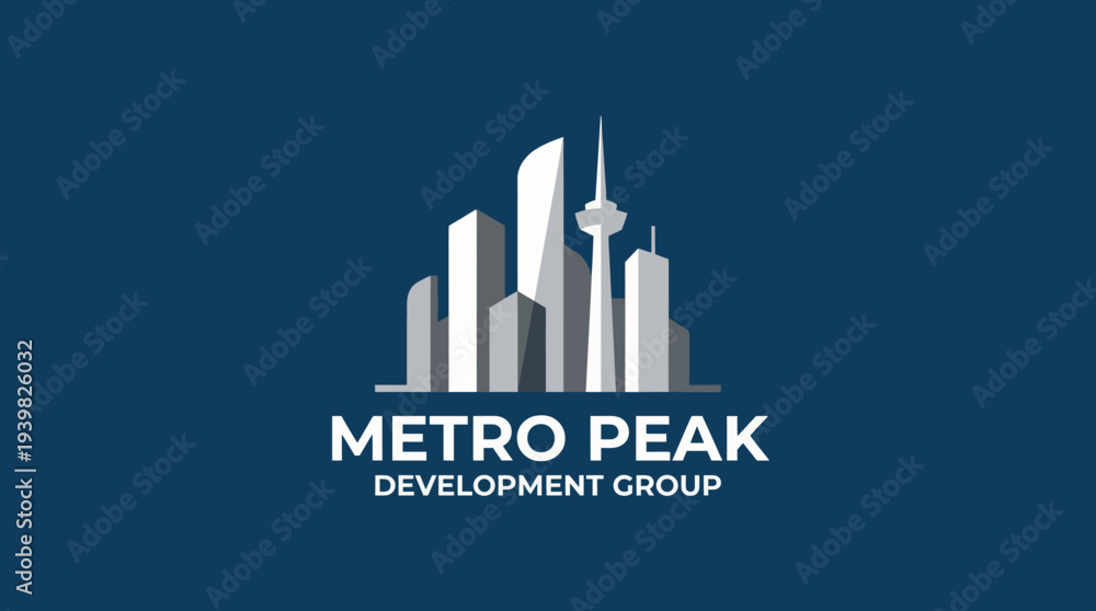 A modern logo design featuring urban skyscrapers symbolizing growth and development, ideal for real estate companies seeking a professional brand identity. #1939826032