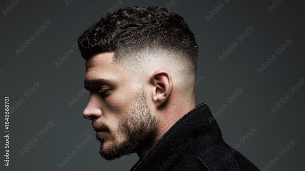 A modern men's hairstyle featuring a sleek fade with a textured top. #1845668701