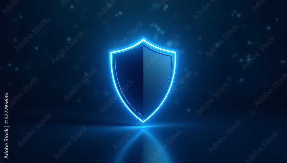 A modern shield icon with a glowing edge placed on a dark blurred backdrop, symbolizing cybersecurity, protection, and trust in secure digital environments. #1527295635