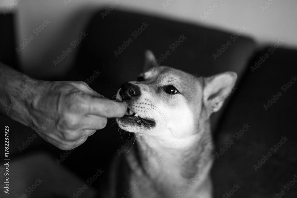 A Moment of Connection Hand Feeding a Dog a Treat #1782237923
