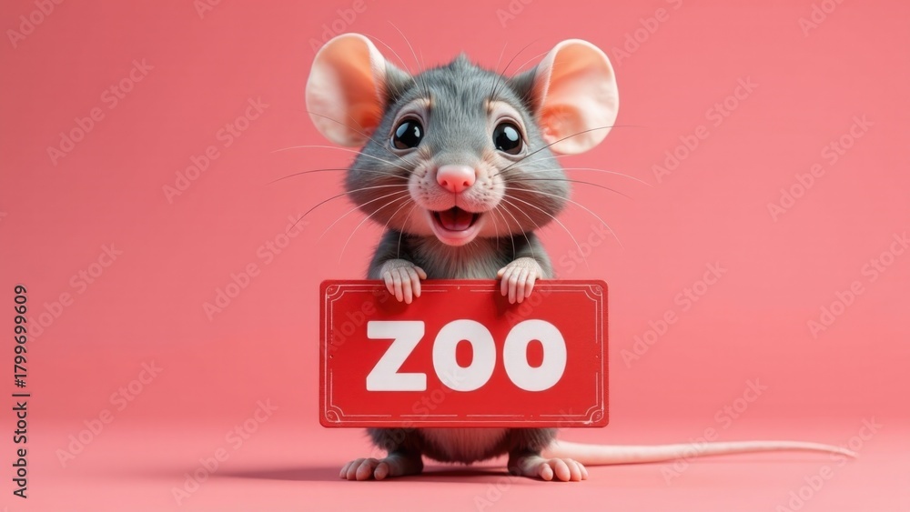 A mouse holds a sign saying 'zoo' in a compact and straightforward description #1799699609