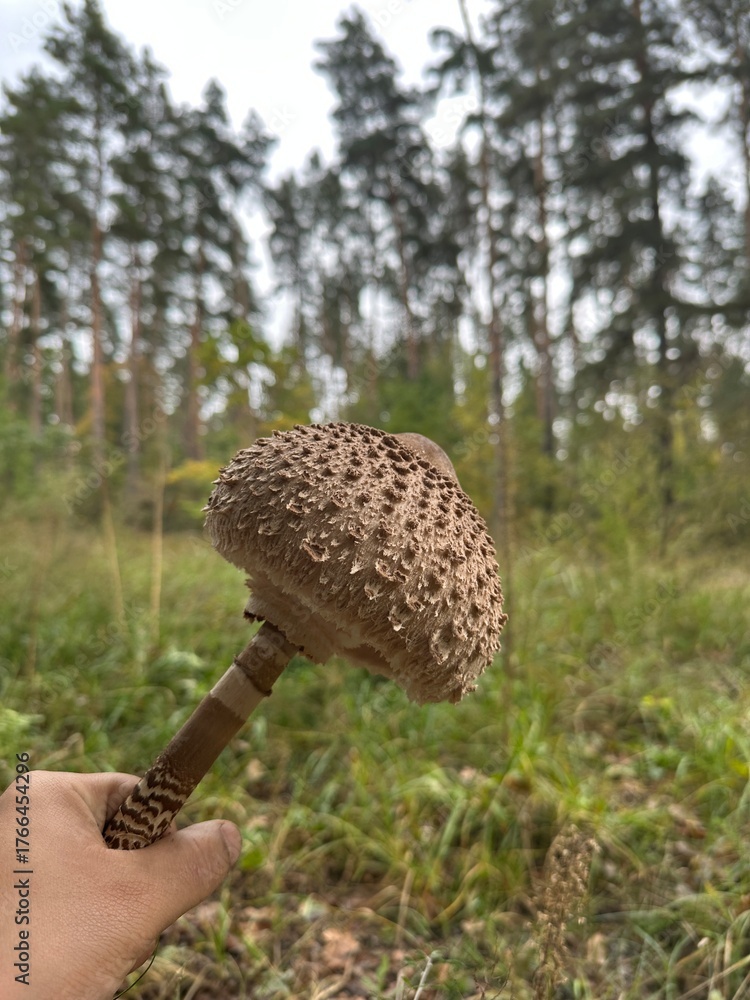 A mushroom picker finds a mushroom umbrella in the forest #1766454296