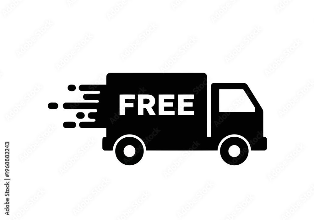 A perfect silhouette of a fast delivery truck icon with white free shipping text vector illustration #1968882243