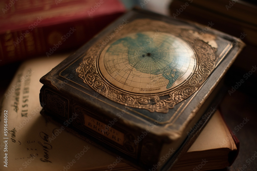 A picture of a book with a vintage bookplate inside, bokeh, World Book Day Generative AI #591648052