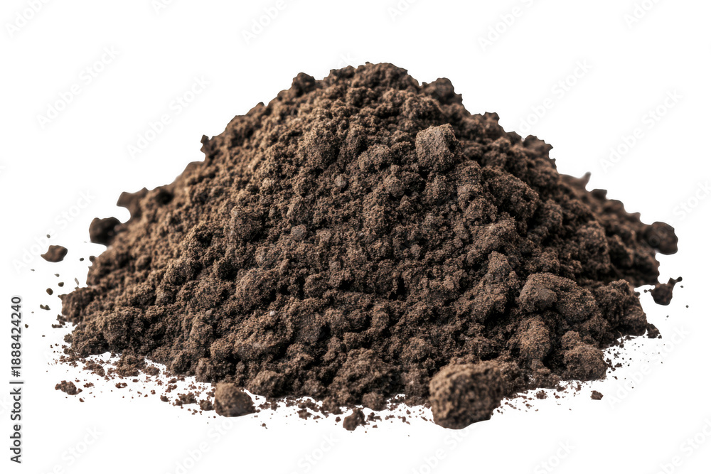 A pile of dark brown soil or dirt texture background for gardening or landscaping projects isolated on transparent background #1888424240