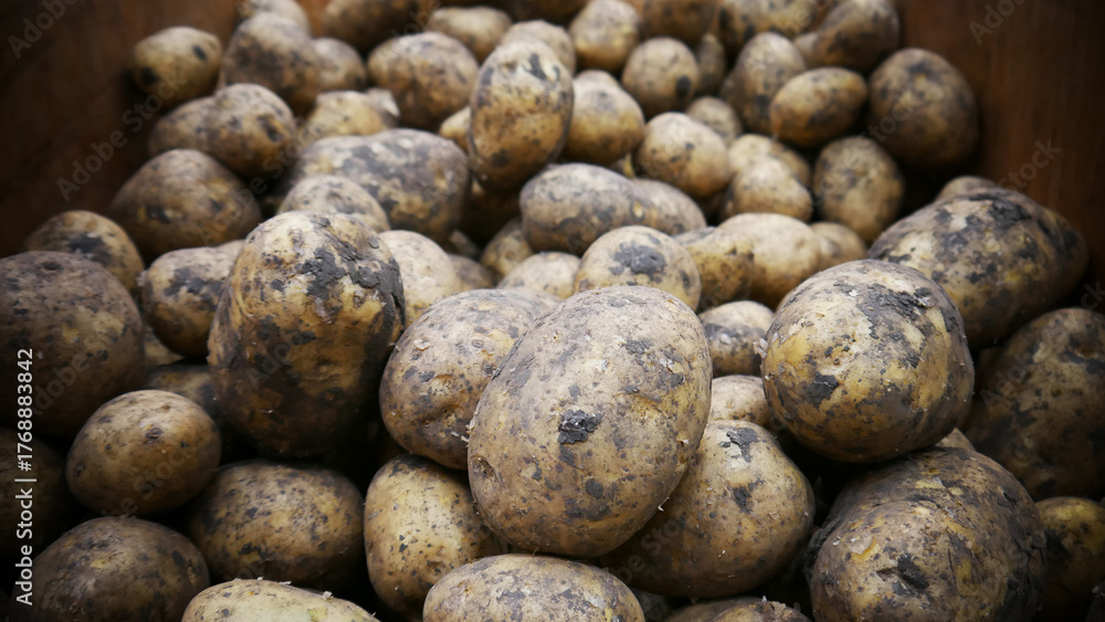 A pile of many unwashed potatoes #1768883842
