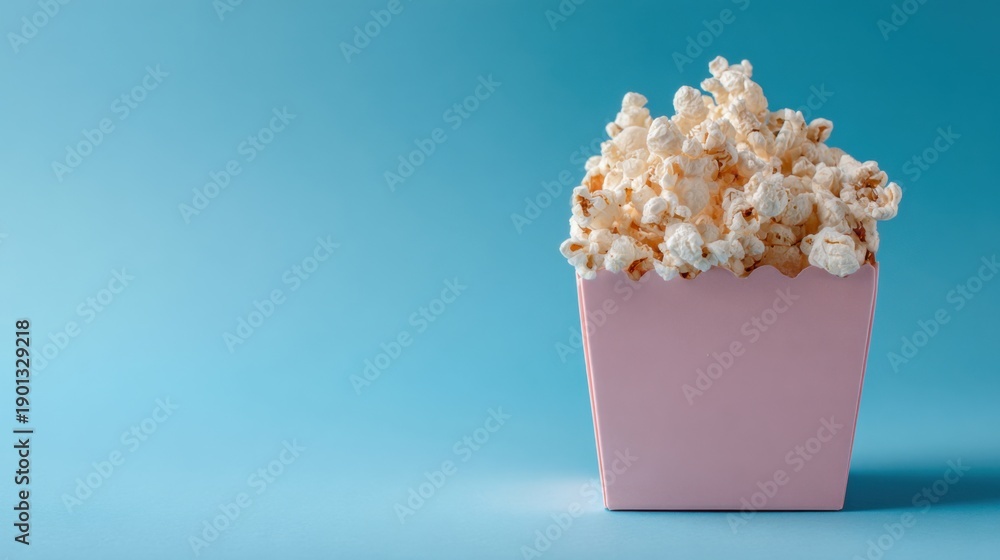 a pink box filled with popcorn on a blue background #1901329218