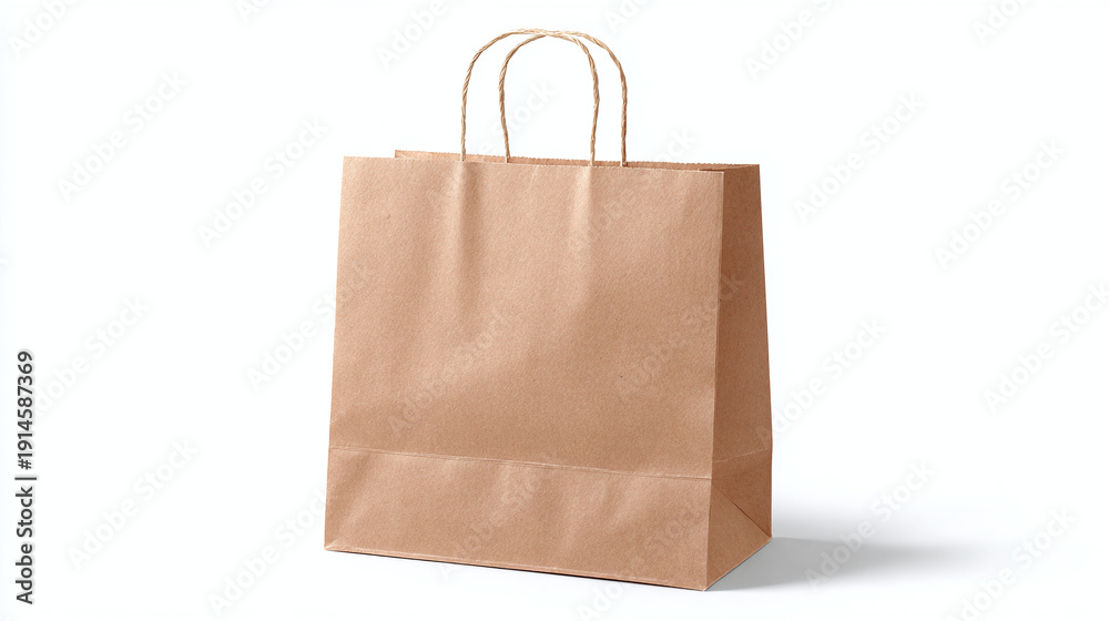 A plain brown paper shopping bag with handles, perfect for carrying items #1914587369