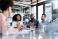 A portrait of a group of professionals sitting around a conference table in an office space #783479720