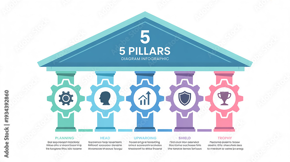 A professional infographic diagram titled 5 PILLARS with DIAGRAM INFOGRAPHIC in smaller text above it #1934392860