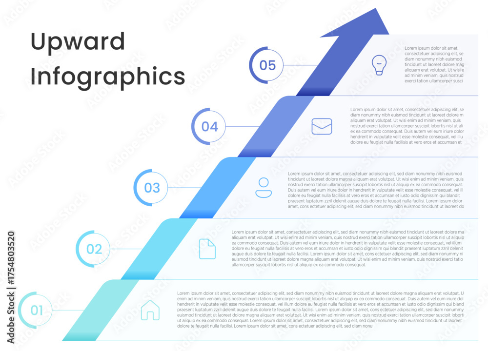A professionally designed vector infographic featuring a modern upward growth chart with 5 distinct steps. This template includes business-relevant icons and clean visual elements, making it ideal #1754803520