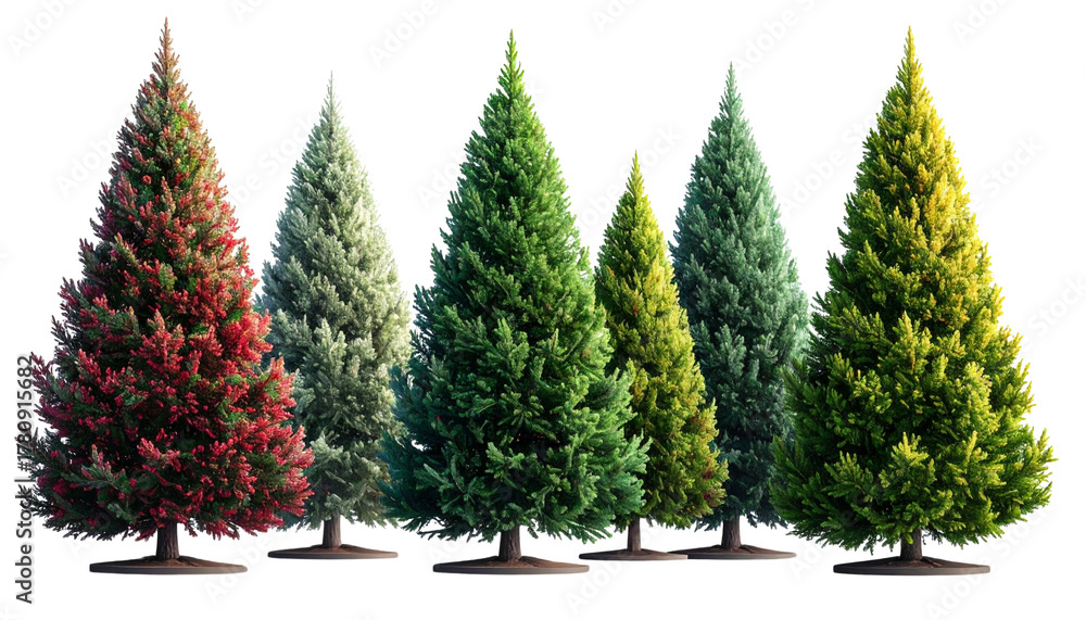 A realistic PNG of a decorated Christmas tree with ornaments, lights, and festive holiday details. #1780915682