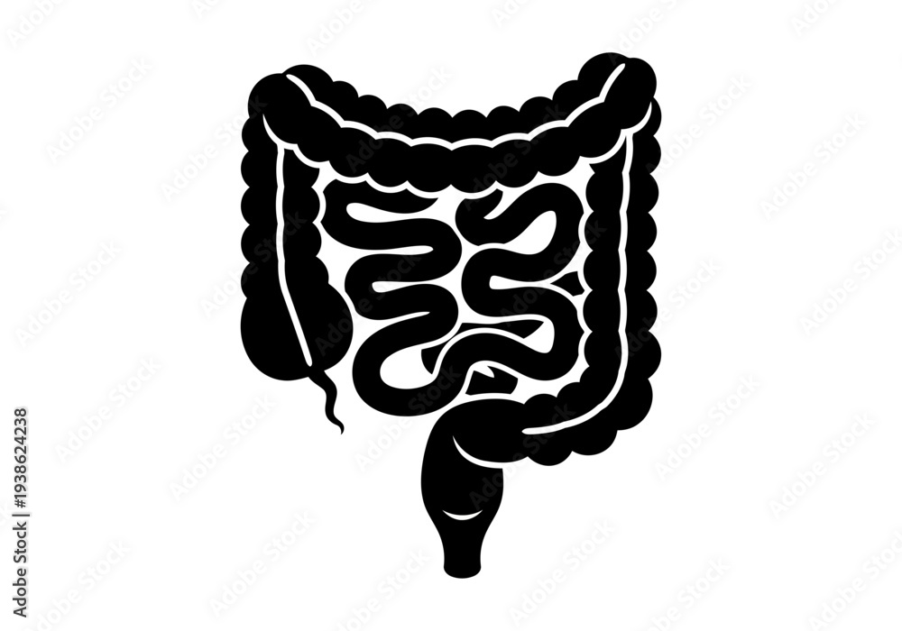 A really simple but perfect black silhouette of human large intestine for medical concepts #1938624238