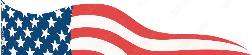 A red white and blue American flag wave background with stars and copy space. America border and corner for header, footer design. #1515962451