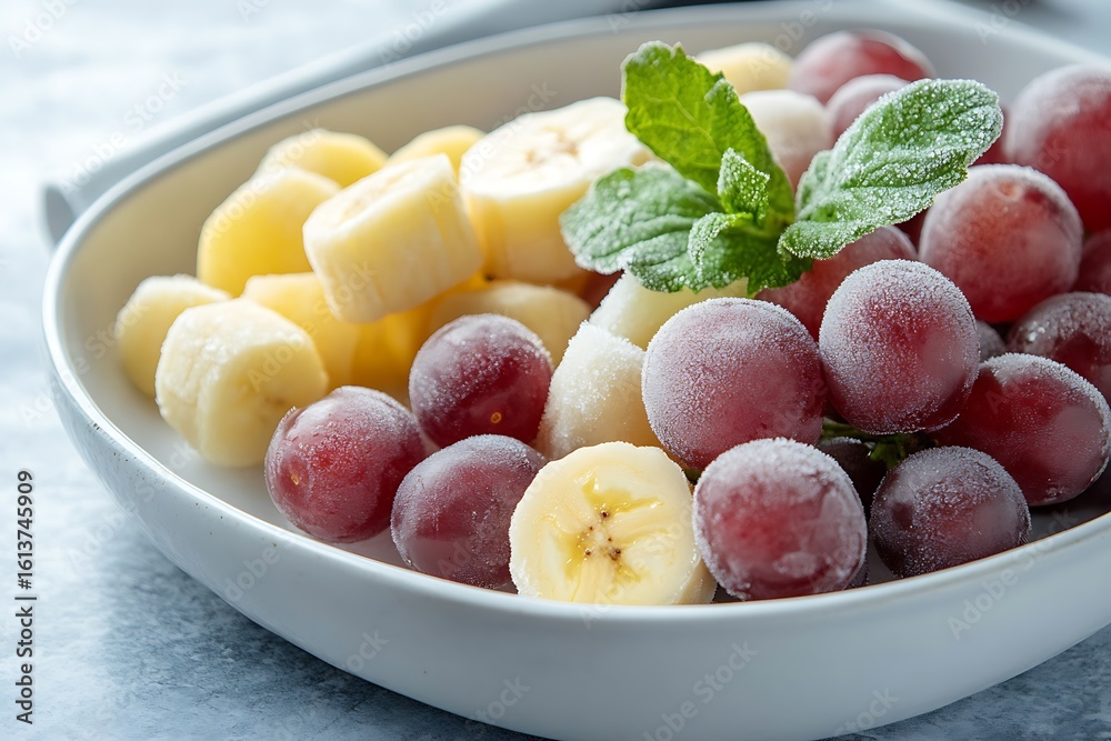A refreshing bowl filled with frozen bananas and juicy grapes. #1613745909