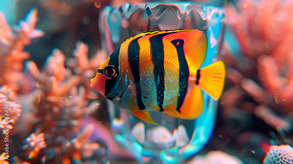 A Regal Angelfish with a Bright Yellow Body and Blue Stripes #1624929989