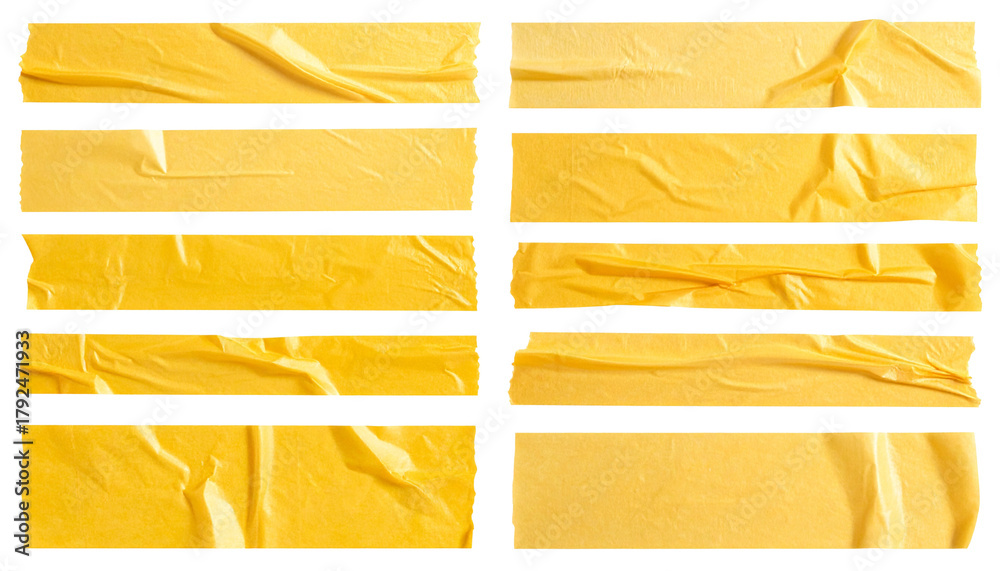 A roll of yellow tape isolated on a white background, perfect for caution, warning, construction, or industrial-themed designs. #1792471933