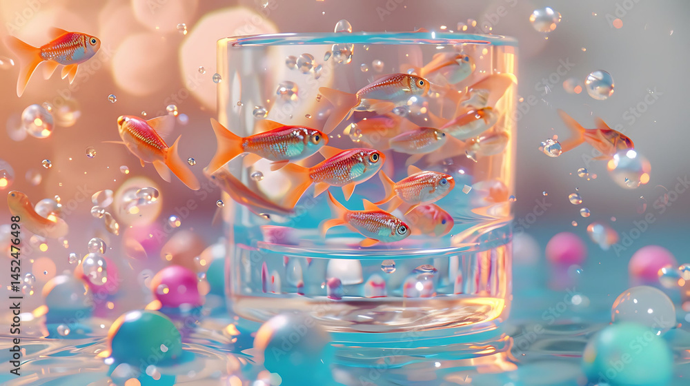 A school of tiny iridescent cherry barb fish swirling #1452476498