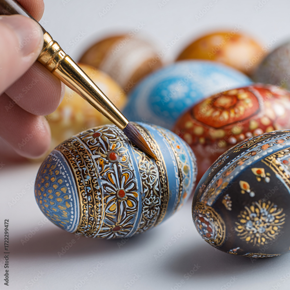 A set of beautifully hand-painted Easter eggs, with vibrant colors and intricate patterns, representing the creative and festive side of Easter celebrations. #1722299472