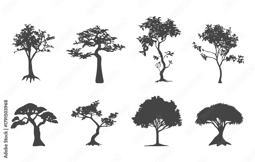 A set of black tree silhouettes, Tree svg, Tree silhouette set, Forest tree svg, Tree vectors, Evergreen tree silhouette. #1791503968