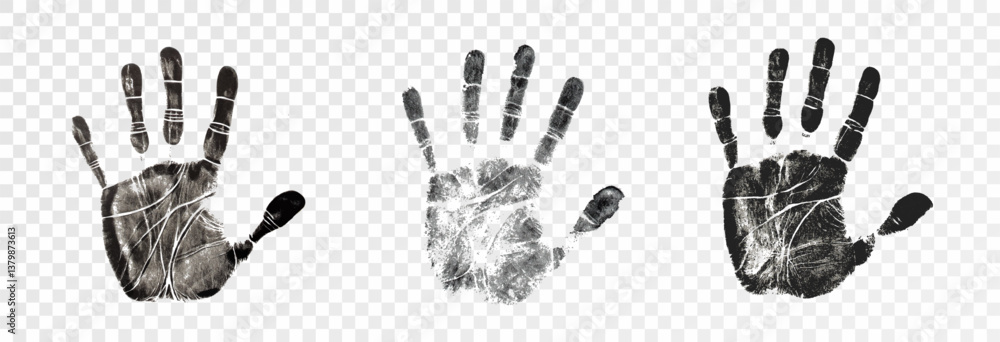 A set of human footprints, shoe prints and palm prints. Collection of vector prints of feet, hands, shoes on transparent background png. #1379873613