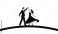 A silhouette of a man and a woman dancing together on a curved line representing a global sphere #1947072919