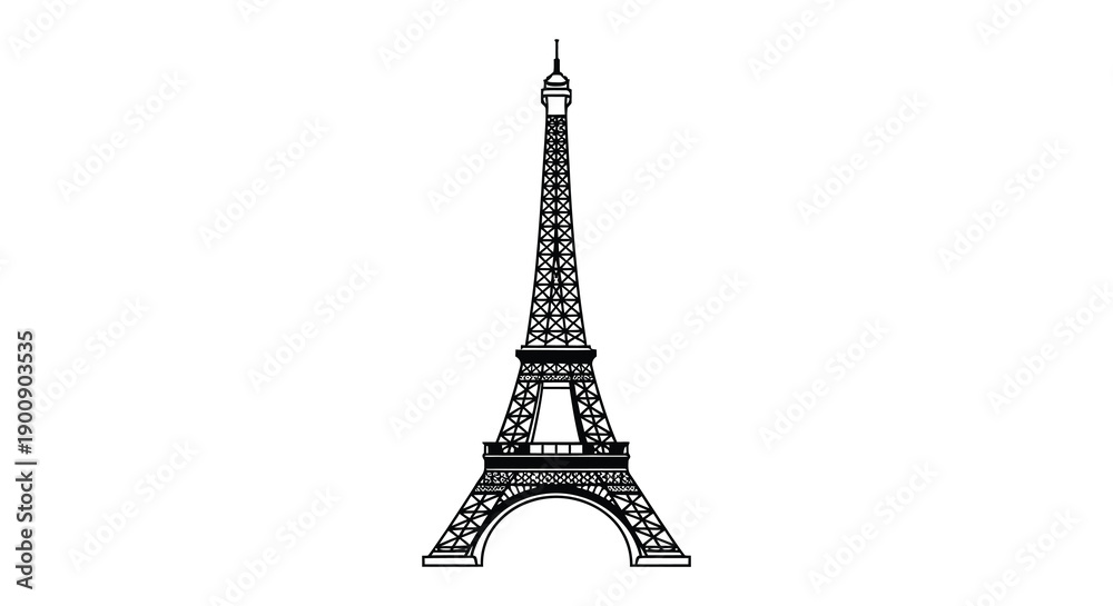 A simplified grayscale line drawing depicts the iconic eiffel tower a landmark of paris france high quality professional #1900903535