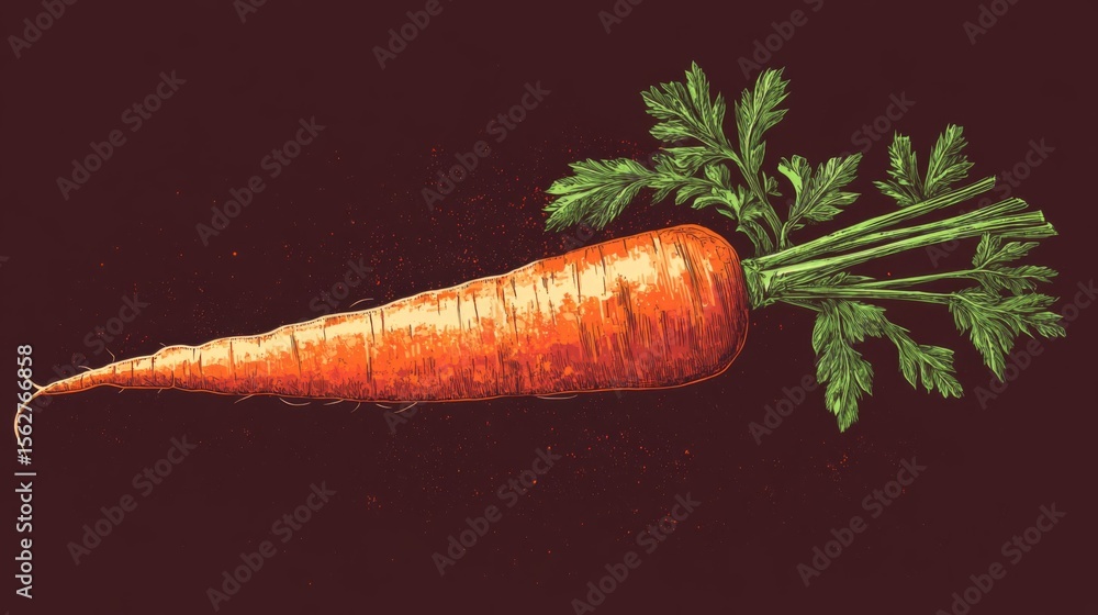 A Single Fresh Orange Carrot With Green Tops #1562766858