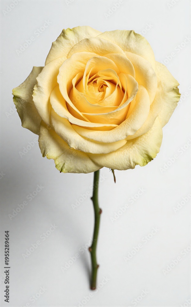 A single yellow rose with delicate petals and a slender stem against #1955289664