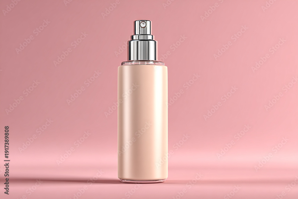A sleek perfume bottle on a pink background with a silver cap #1917389808