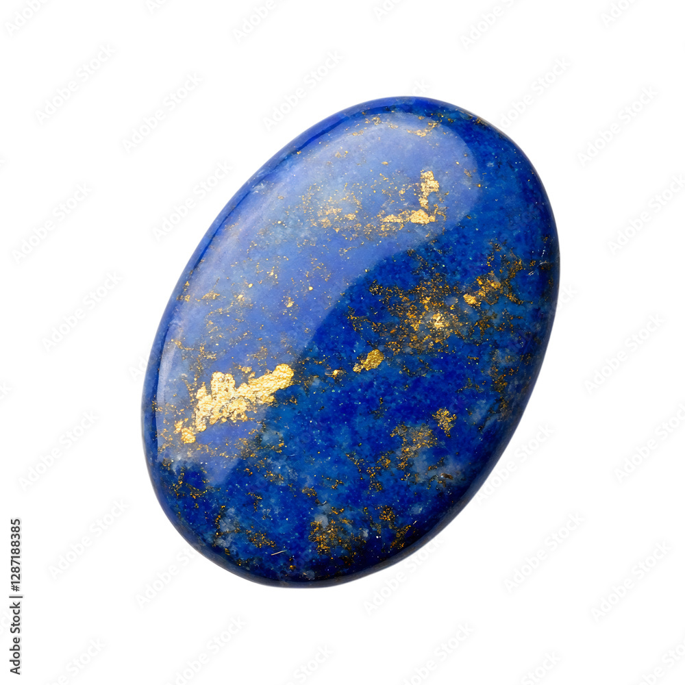 A Smooth Lapis Lazuli Cabochon with Vivid Blue Color and Gold Leaf Detailing Isolated on Transparent Background #1287188385