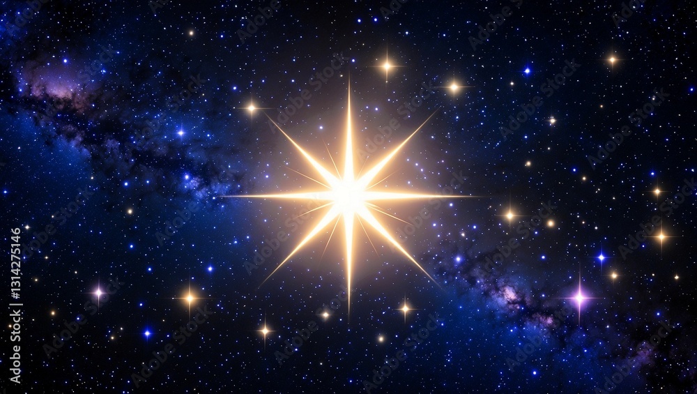 A starry night sky with a glowing center star #1314275146