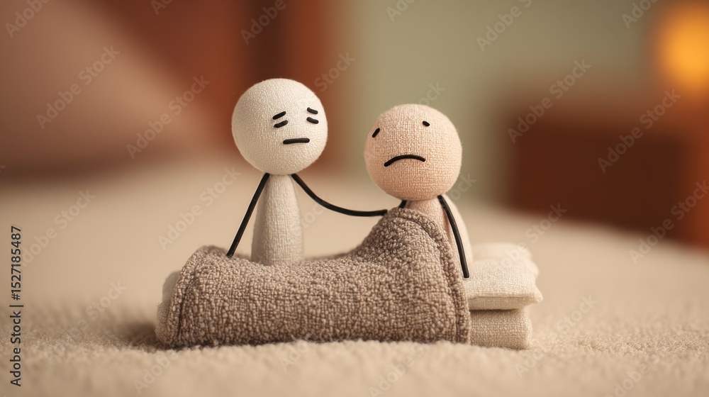 A stick figure tends to someone in bed, wrapping them with a blanket, symbolizing empathy and nurturing during illness. #1527185487