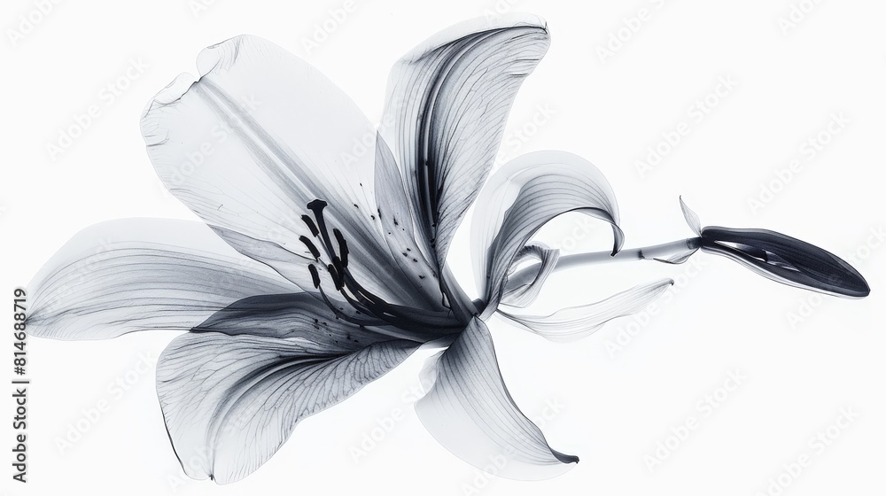 A stunning black and white capture of a delicate, intricate flower in full bloom, showcasing its graceful petals and intricate details with a touch of elegance and simplicity. #814688719
