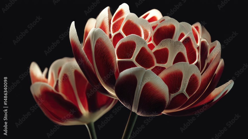 A stunning modern tulip design where the flower is reshaped into a complex geometric pattern #1486340098