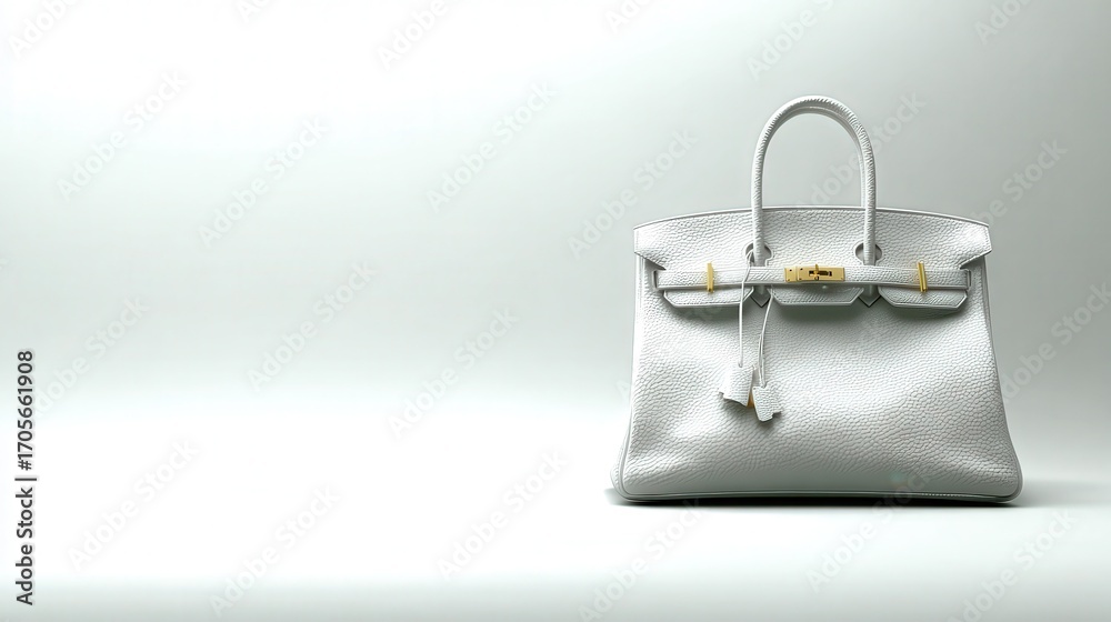 A stylish white handbag is showcased against a minimalist background, emphasizing its luxurious texture and design, Ideal for fashion magazines, e-commerce sites, or advertisements promoting elegance #1705661908