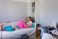 A teenage girl in pajamas lies in bed with her mobile phone in a messy room #1748671884