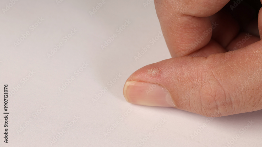 A thumb with common warts on a white background #1907121076