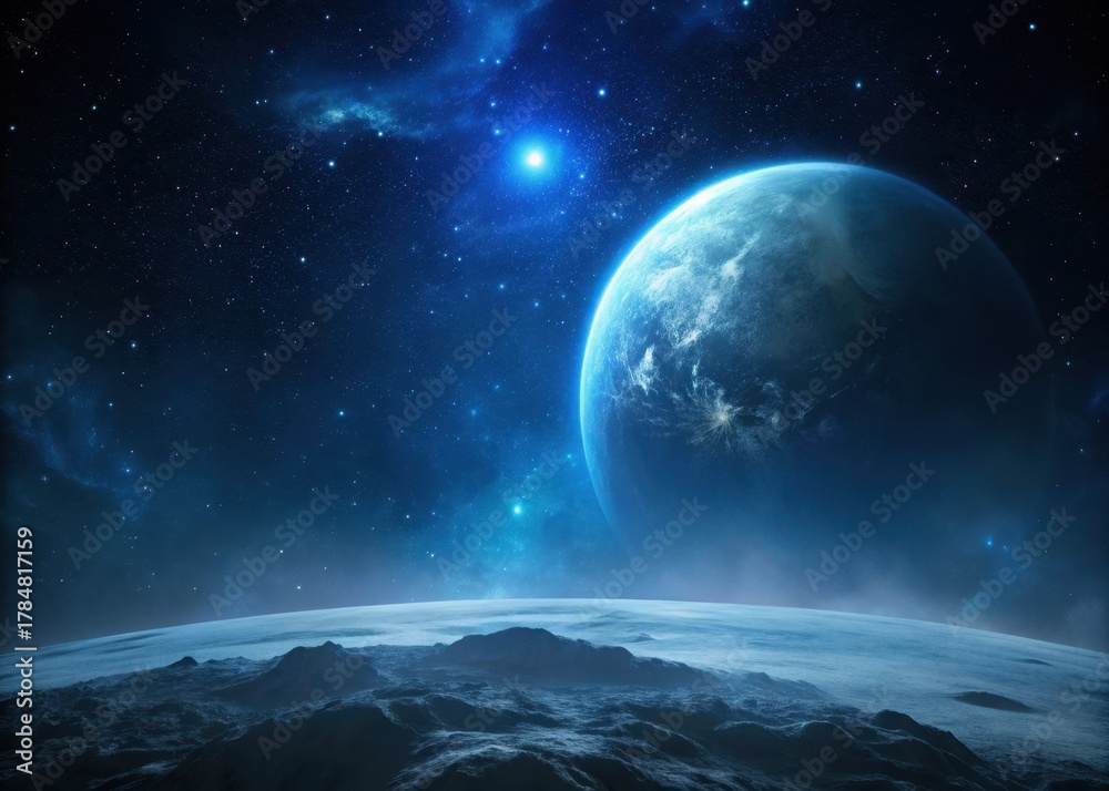 A tranquil image of Earth from the lunar surface with a vast #1784817159