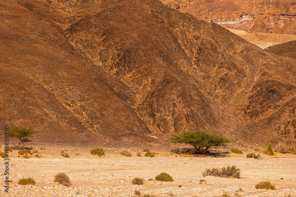 A tree in the desert. Landscape of the beautiful and colorful desert of Timna National Park in southern Israel. #1968311328