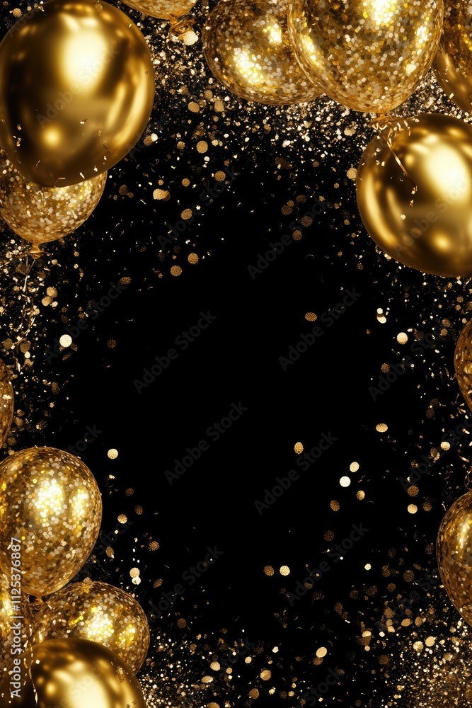 A vertical celebration frame with metallic gold balloons and a dark background, perfect for sale or grand opening banners. - #1125376887