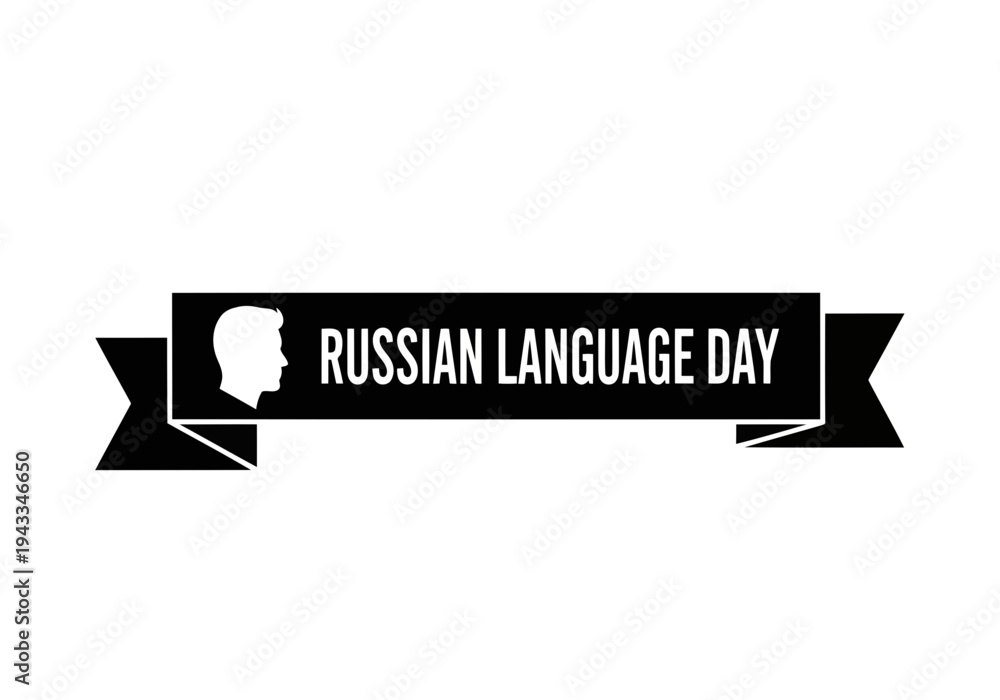 A very simple black and white illustration of russian language day with a man silhouette on banner #1943346650