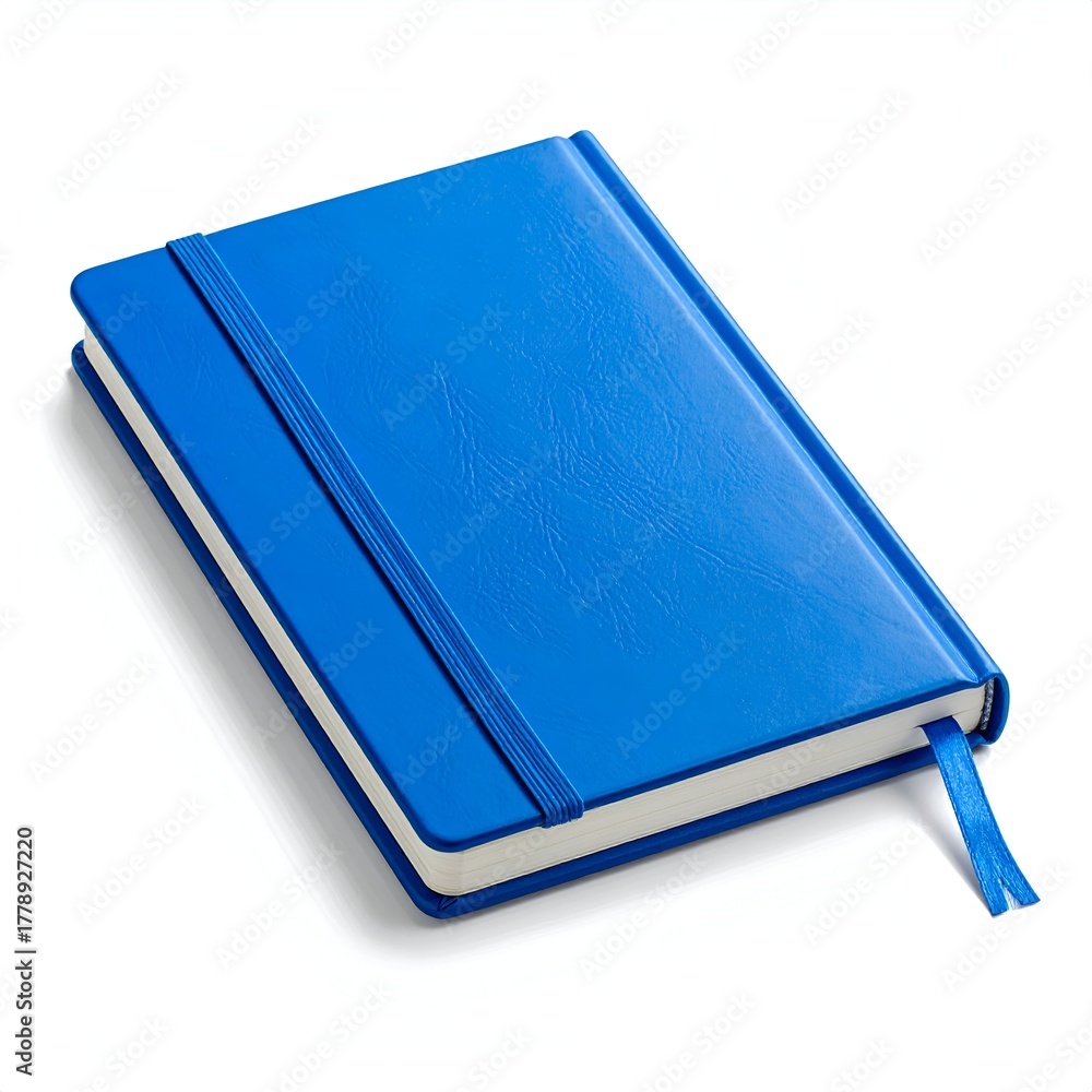 A vibrant blue notebook with a textured cover, resting on a clean white surface, ideal for note-taking #1778927220