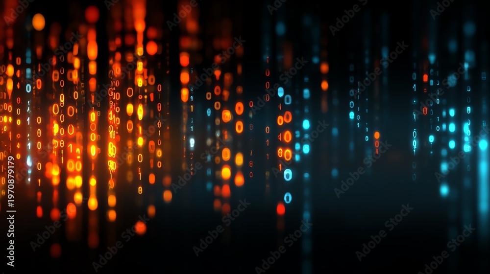 A vibrant display of colorful light streaks creating a dynamic background. The contrasting orange and blue tones evoke a sense of energy and movement, perfect for digital designs. #1970879179