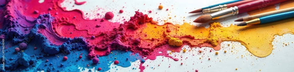 A vibrant palette of paints spills across a canvas, brushes scattered nearby, hinting at the creative process in full swing Artistic chaos meets structured beauty , background, canvas #1746541149