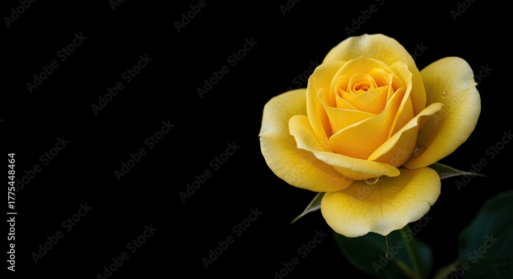 A vibrant yellow rose in full bloom, showcasing its delicate petals and rich color, symbolizing friendship and joy in nature's embrace ,macro ,close-up ,vibrant #1775448464