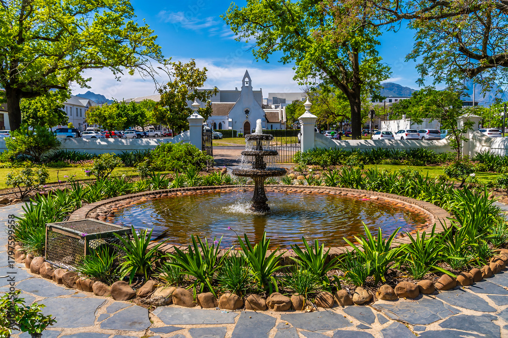 A view from a garden towards the central park in Stellenbosch, South Africa in springtime #1797599558